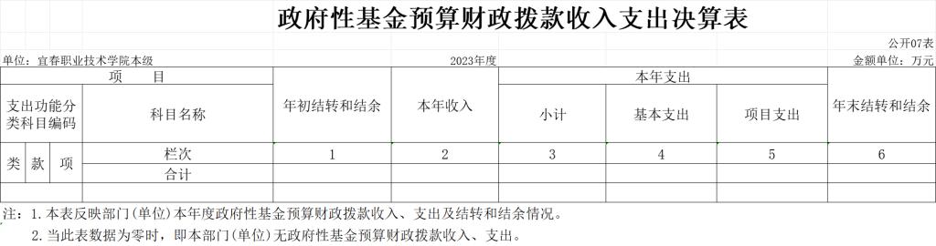 七、政府性基金预算财政拨款收入支出决算表