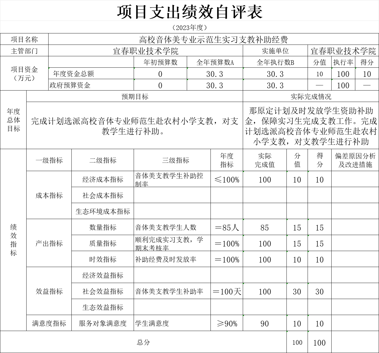 本单位“33个项目支出绩效自评表”如下: