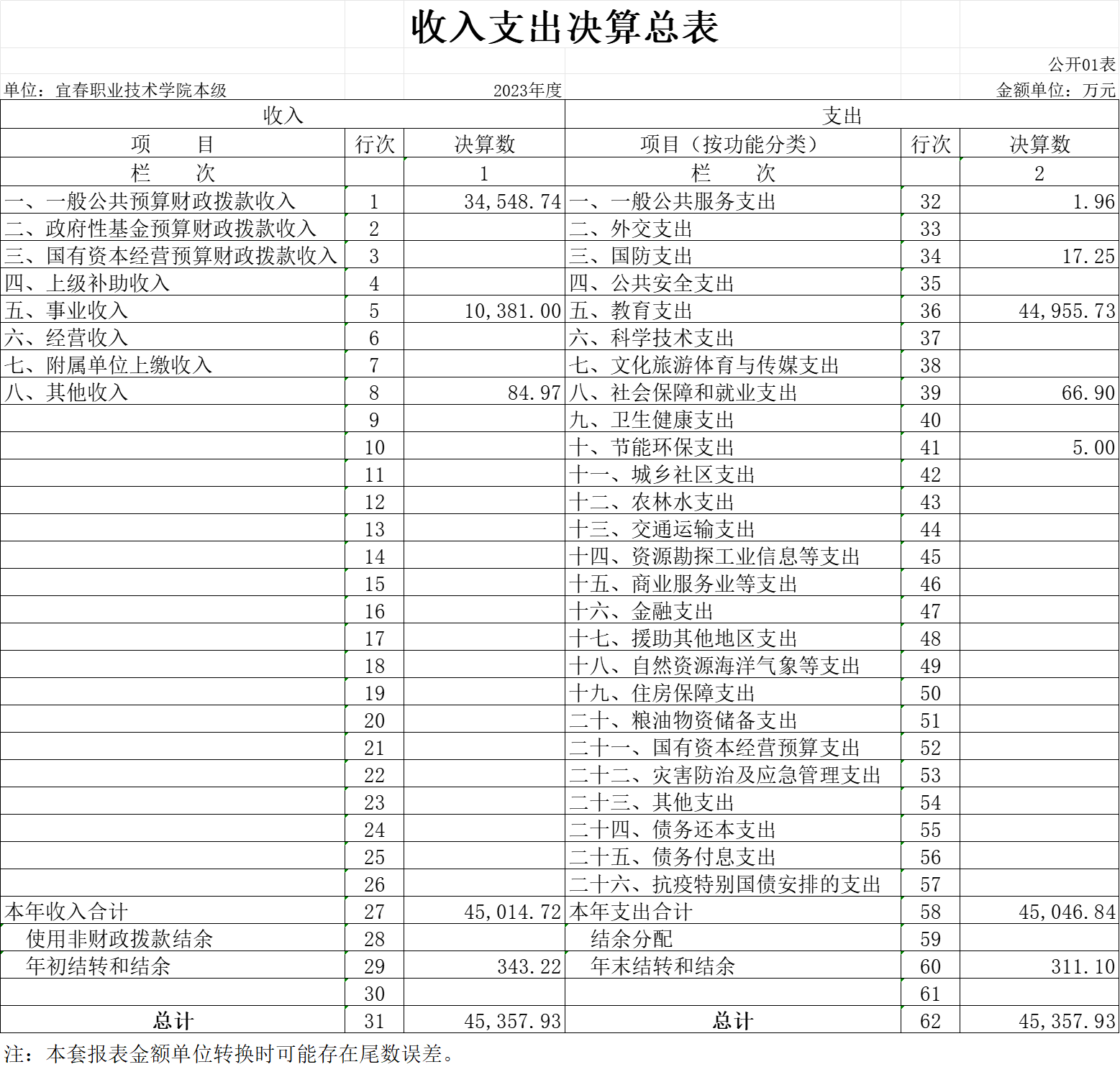 一、收入支出决算总表