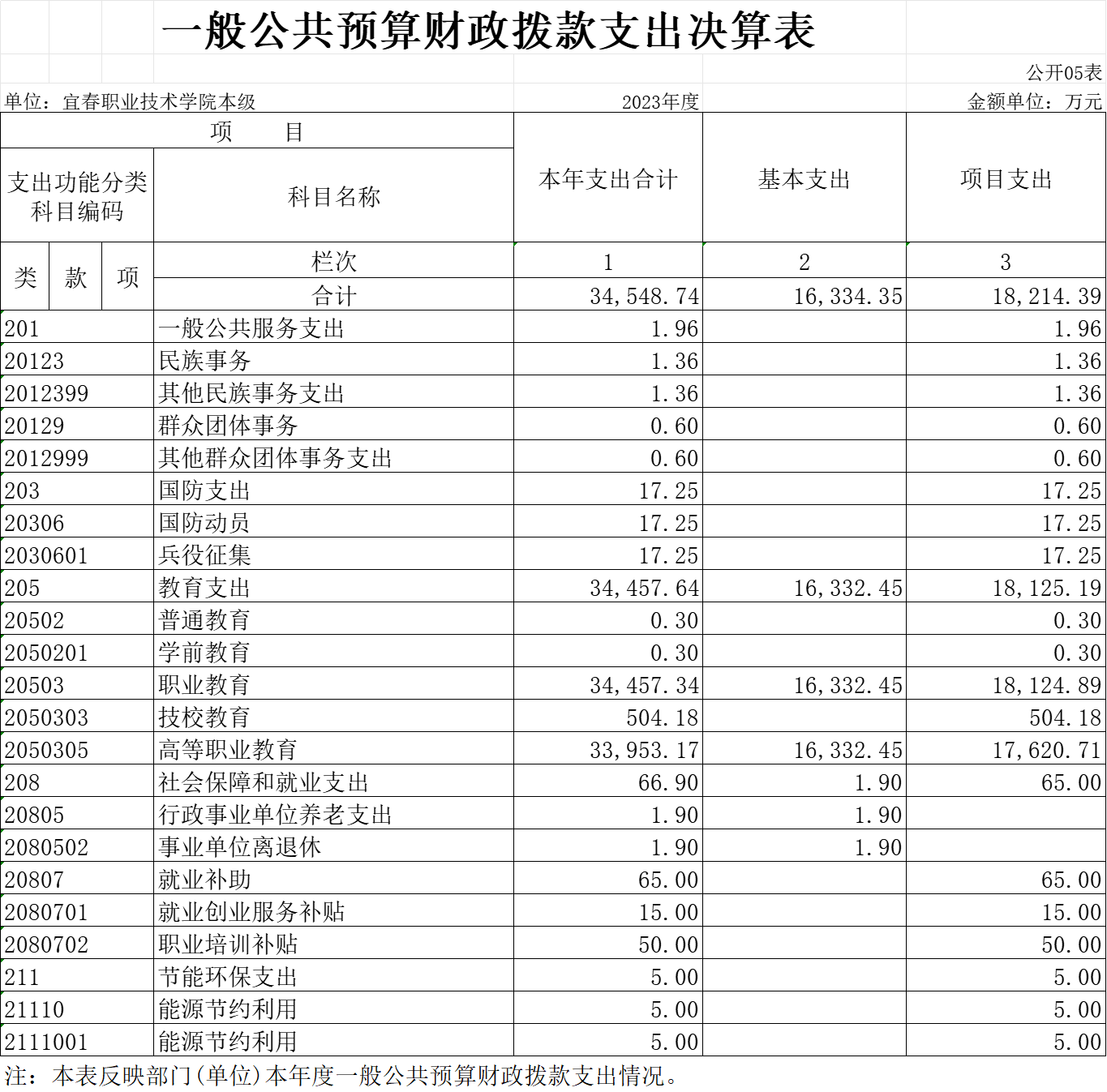 五、一般公共预算财政拨款支出决算表