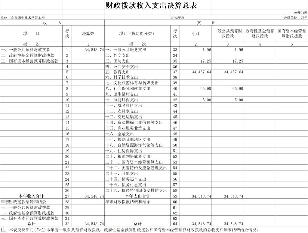 四、财政拨款收入支出决算总表