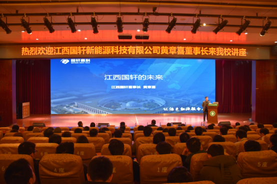 宣讲课上,江西国轩董事长黄章喜就锂电的基本知识、产业发展方向、五年发展规划及国轩人力资源计划四个方面宣讲课程,并向学生介绍了国轩的企业规模、企业业务、企业文化、薪资待遇和员工晋升机制等多方面内容,将国轩未来美好的发展形势描绘给同学们。黄章喜董事长用“技术型、专注型、国际化”三个词高度概括了国轩高科。目前国轩高科在全球建立七大研发平台和国际一流验证实验室,不断提升研发技术,大力吸收人才,并且专注于电池材料、电池制造和产品创造,坚持“产品为王”。同时国轩高科与大众集团进行合作,迈出了国轩走向世界的第一步。