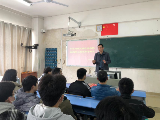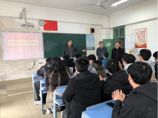 本站讯(机电与新能源汽车学院 周勤 学生记者 廖建星)3月1日下午,机电与新能源汽车学院在第一教学楼八楼如火如荼地展开了2021级社招班开学典礼活动,出席人员有机电与新能源汽车学院副院长吴东平、院党总支副书记宋秋奴、团总支书记兼班主任周勤及21级社招班全体新生,会议由周勤老师主持。