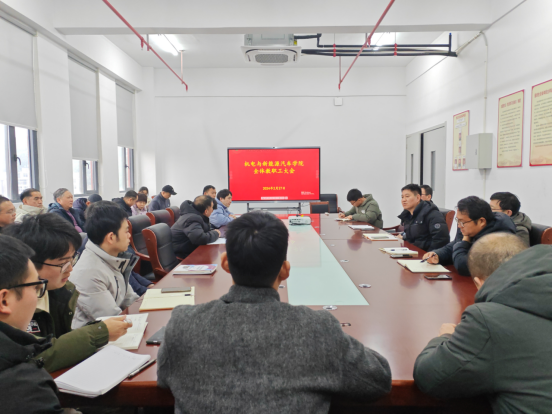 守正创新促实效,接续奋斗谱新篇,2月27日下午,机电与新能源汽车学院在新能源技术工程中心508会议室召开全体教职工大会。会议由院党总支书记赵琰主持,全体教职工参会。