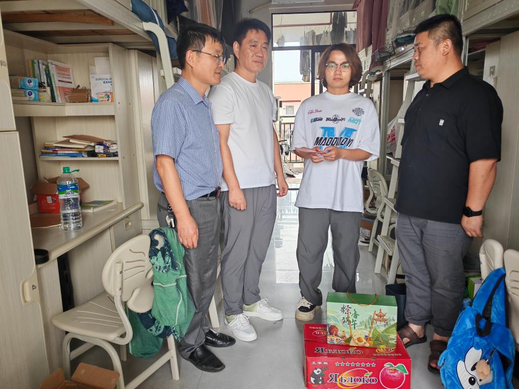 为让学生感受温暖和关怀,收获关爱和支持,6月7日,值端午节来临之际,机电与新能源汽车学院党总支书记赵琰、党总支副书记宋秋奴与班主任黄文一行走访慰问学生,为他们送上慰问品、慰问金及节日祝福。