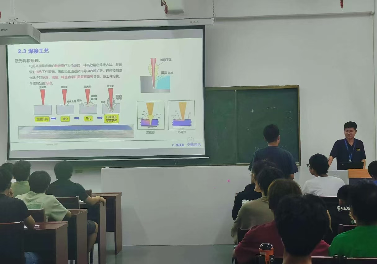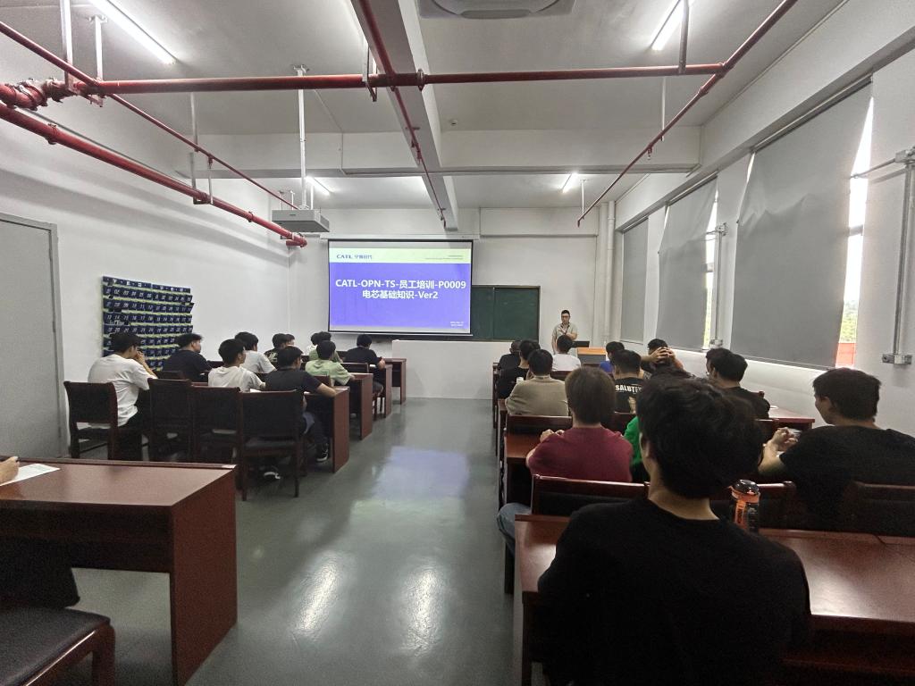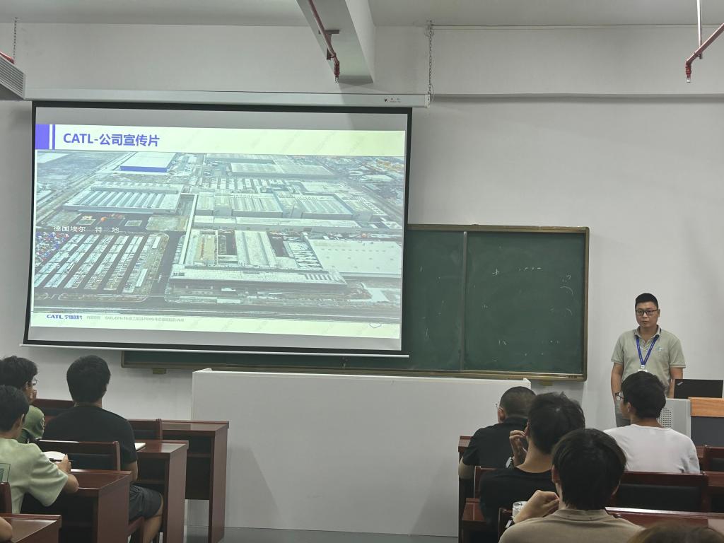 授课伊始,宁德时代讲师陈慧通过播放视频形式,向同学们介绍了宁德时代的企业文化、核心价值观及未来发展规划;并以电芯基础为主题进行授课,为同学们理清楚电芯材料、工艺流程等主要概念和理论基础。
