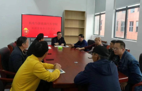 本站讯(机电与新能源汽车学院 易健)根据教育部关于2023年高校实验室安全检查的相关指示工作,落实“三比三争”工作。4月18日下午,机电与新能源汽车学院院长吴东平组织召开实训室安全工作会议,参会的人员有教务科科长张绍军、教务干事易健、专任教师叶楠以及学院实验员共10人。