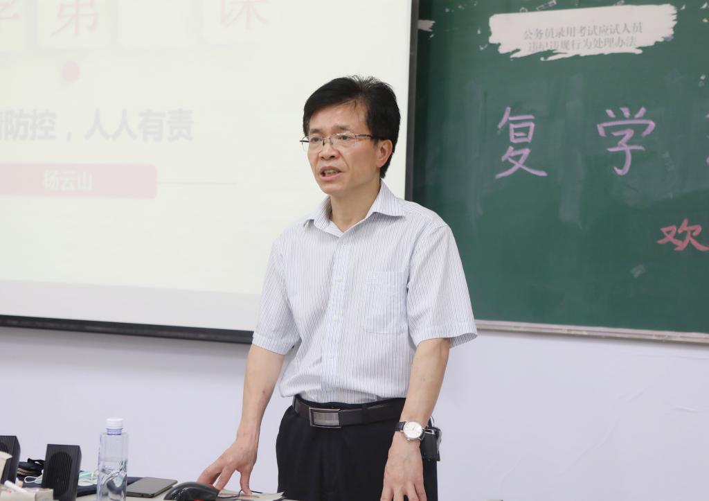 当听说有多位同学返校前为防疫工作捐款捐物,或参与志愿者活动,杨云山给予了高度肯定和赞扬,也分享了自己被隔离及抗疫的经历体会。他号召大家做好个人防护的同时,学会辩证思考、明辨是非。