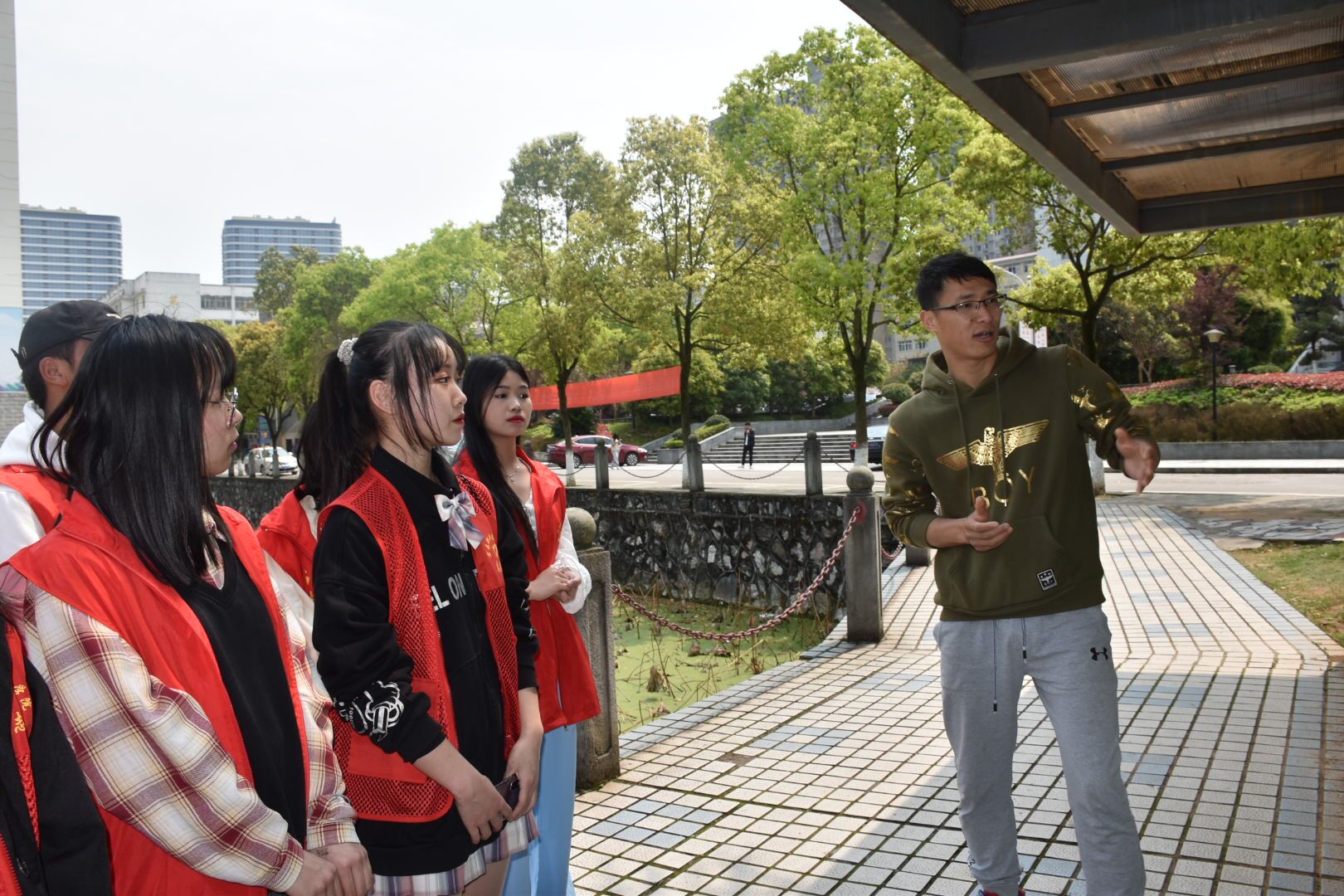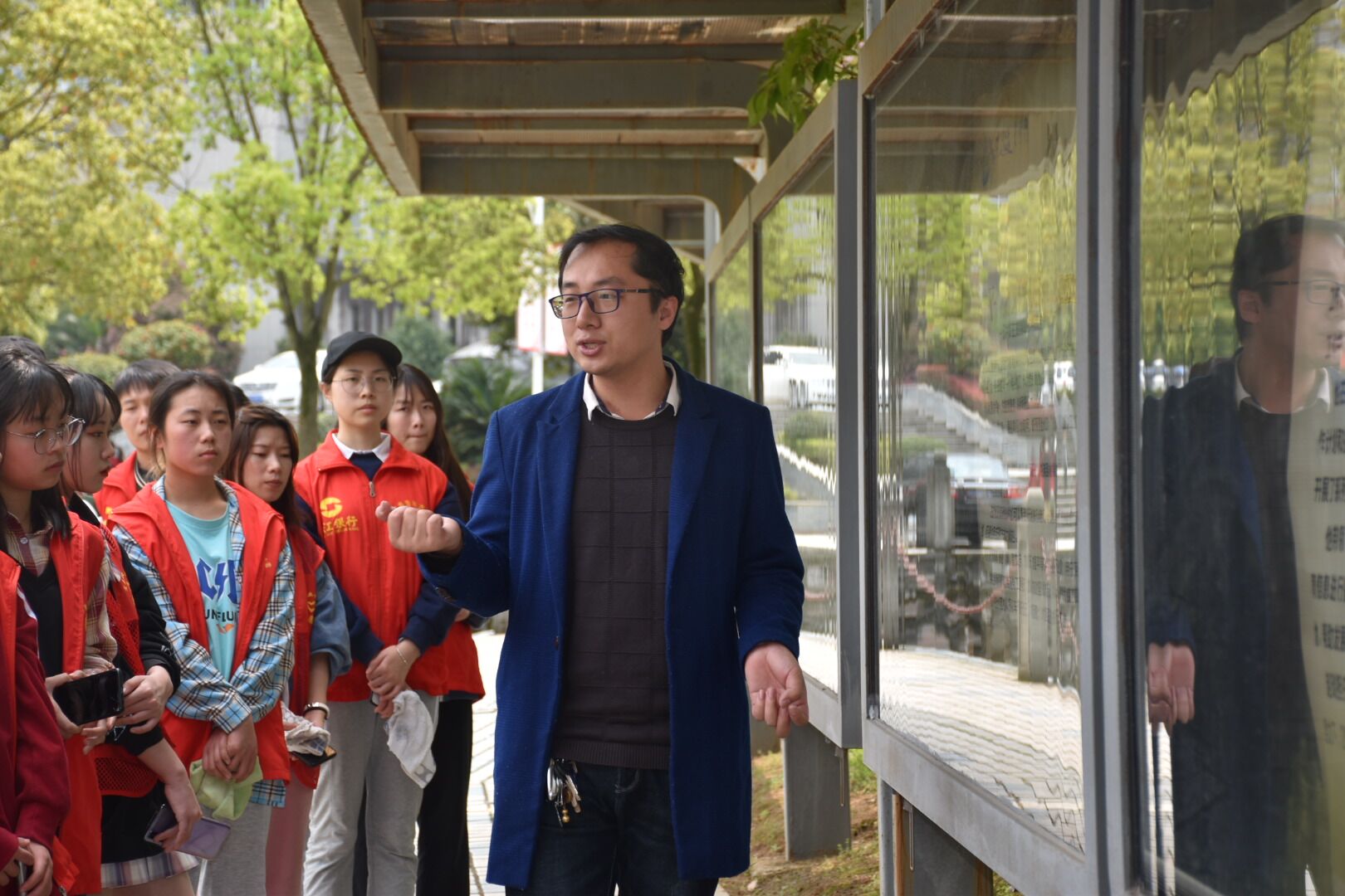 最后,两位老师和星光社员同学们一起对好人文化长廊进行了志愿清扫,一群身着红色志愿服的小伙伴们在春日的暖阳下,认真仔细地扫着每一个角落,有的扫,有的拾,有的擦,扫后的好人文化长廊在春日的暖阳下清新亮丽、熠熠闪光。