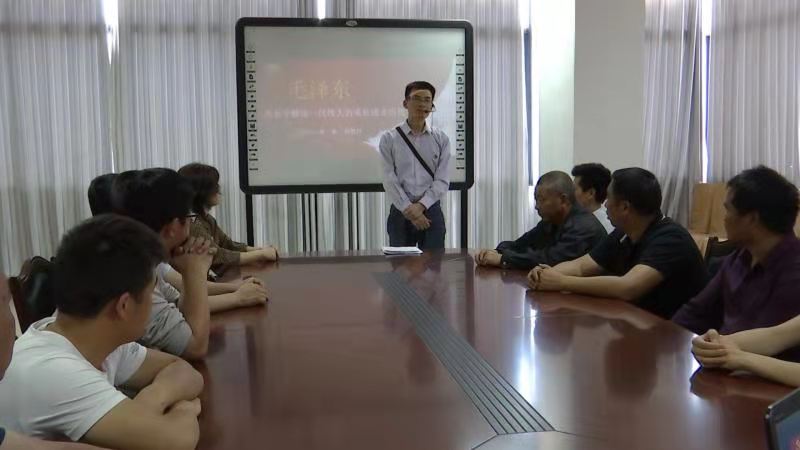 本站讯(马克思主义学院 郭斓)为贯彻落实习总书记在党史学习教育动员大会上的讲话精神,推动党史学习教育深入基层、深入群众、深入人心,马克思主义学院近期选派了部分思政课教师深入企业、社区进行党史宣讲。4月15日下午,宜春市理论宣讲团骨干库成员、英国上市公司365马克思主义学院形势与政策教研室主任、曾骏副教授在宜春市泰极产业管理有限公司的党支部活动室,为企业党员讲授了题为《从名字解读一代伟人的成长历程》的党史学习教育专题党课。党课由该企业党支部书记兼总办主任余惠密主持。