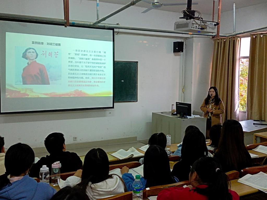 习近平总书记指出,历史是最好的教科书,是最好的营养剂和清醒剂。万露露老师从习近平的中国革命历史观入手,引导学生用辩证唯物主义和历史唯物主义正确看待历史前进道路上的失误和曲折,解构历史虚无主义的危害,让学生对历史虚无主义形成了正确而清醒的认识和体会。