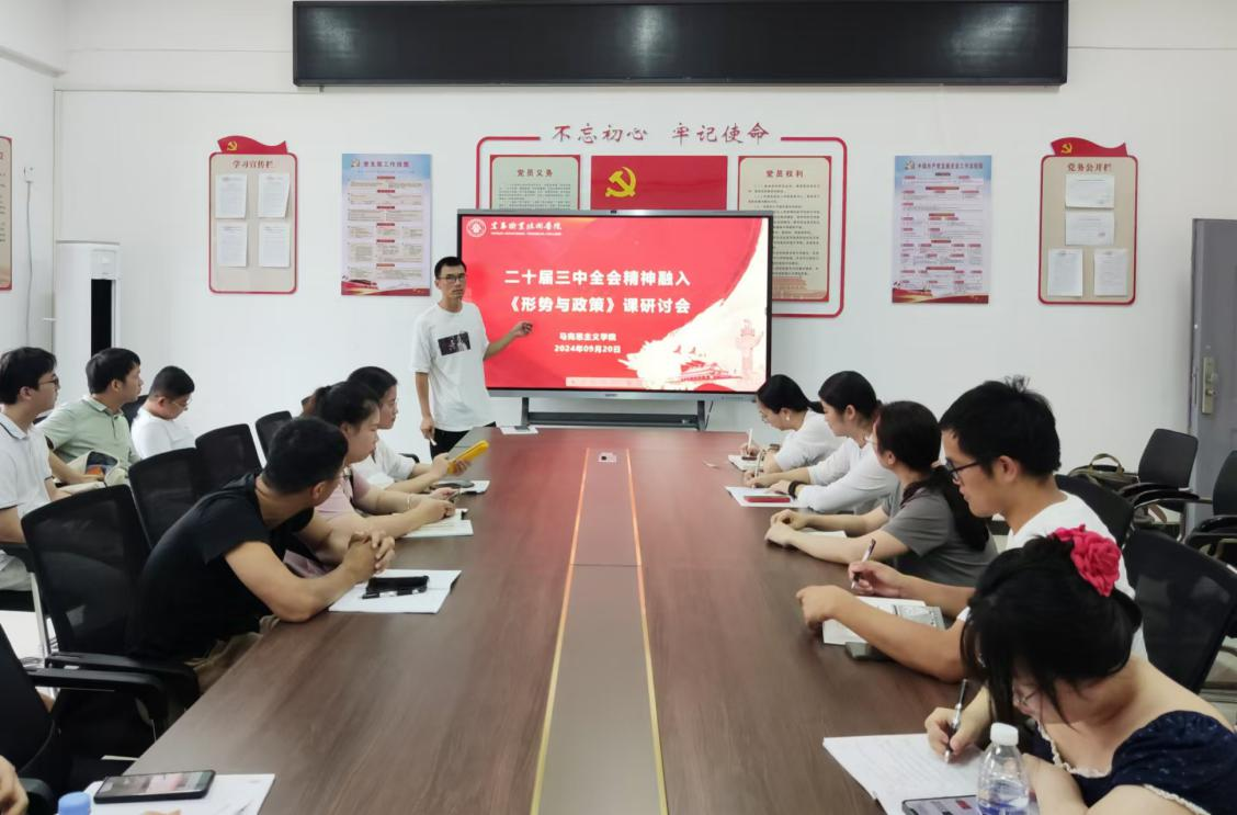 此次备课会开阔了任课教师的教学思路,为新学期《形势与政策》课教学工作的开展奠定了良好的基础。接下来,形策教研室将继续推动学习宣传贯彻党的二十届三中全会精神走深走实,聚焦时政热点,加强集体备课,不断增强教育教学的实效性,引导广大学生坚定不移听党话、跟党走,凝聚全面深化改革的青春力量。