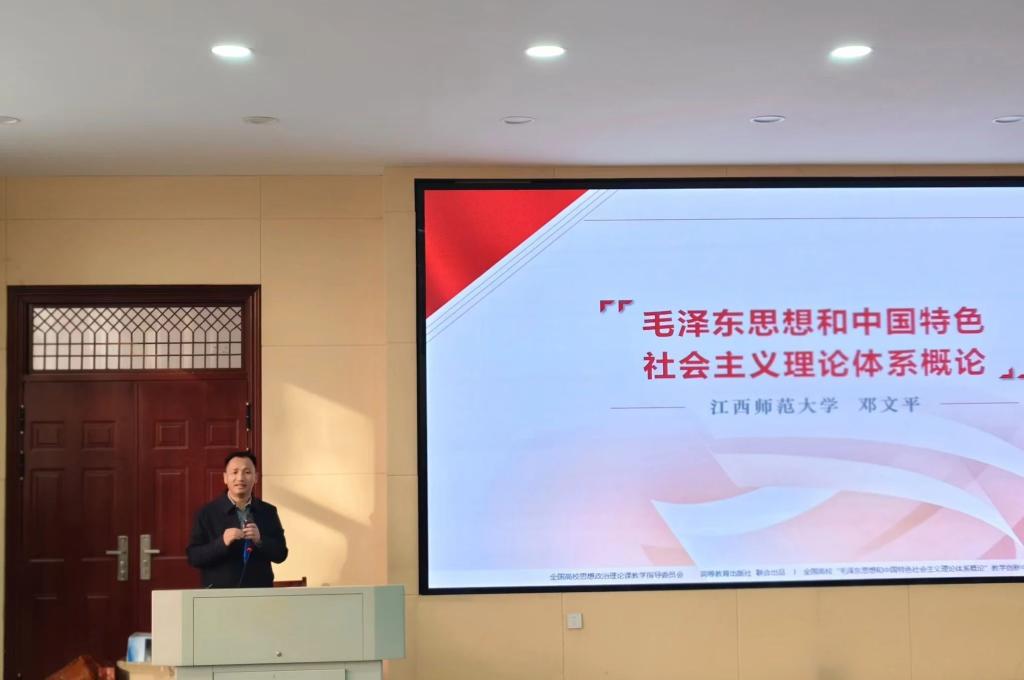 教学示范环节,江西师范大学马克思主义学院邓文平副教授以“毛泽东思想活的灵魂之一——实事求是”为题,围绕实事求是的基本内涵、形成过程及实践要求等作了一堂有深度、有厚度、有温度的示范课。