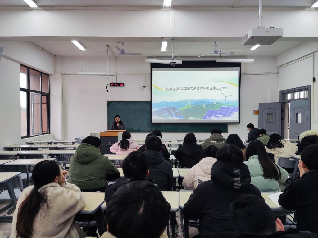 备课会上,青年教师何风艳围绕《能源安全》,以推动新能源高质量发展需要处理好哪些关系这一问题为授课切入点,进行了精彩的教学展示,教学资料准备充分,授课逻辑清晰,层层推进,所提的问题皆能引发学生深入思考,营造了一个自然流畅、富有成效的课堂氛围。