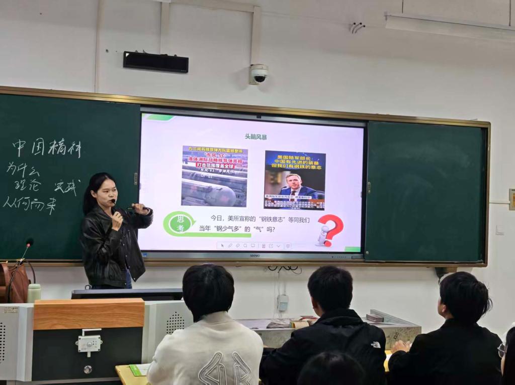 11月13日下,陈牡丹老师在和济楼C507进行“继承优良传统 弘扬中国精神”公开课教学。她通过“人为什么要有点精神?”“中国精神从哪里追溯?”“中国精神有何内涵?”三个问题链来讲述中国精神的丰富内涵。