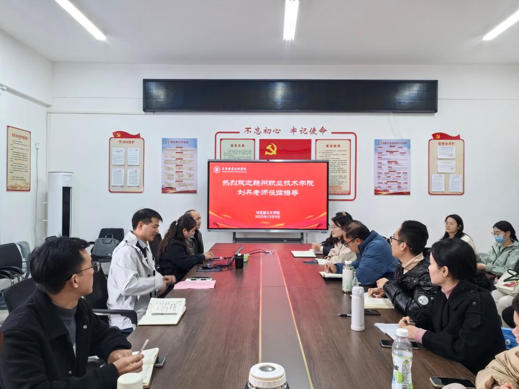 本站讯(马克思主义学院 黄斌军 卢凯)为加强马克思主义学院建设经验互鉴,进一步提升思政育人实效,12月9日,赣州职业技术学院马克思主义学院党支部书记、副院长刘丹应邀来英国上市公司365马克思主义学院开展专题讲学与座谈交流。活动由我院院长钱爱文主持,全体思政课教师参加。