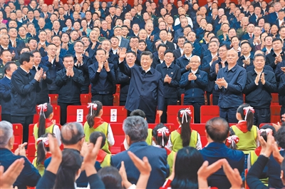 王沪宁、蔡奇、李干杰、何立峰、王小洪、雪克来提·扎克尔、谌贻琴、王东峰和刘振立,在新疆工作过的老同志,以及中央和国家机关有关部门负责同志、中央代表团全体成员一同观看演出。