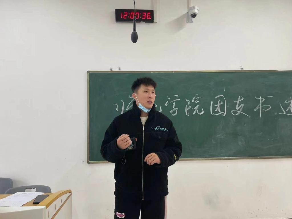 本站讯(师范学院 霍文杰)为加强师范学院基层团支部建设,总结2022年度团支部工作内容,师范学院团总支2022年12月8日于正心楼D109召开“师范学院团支书述职大会”,本次会议由师范学院团总支负责人霍文杰主持