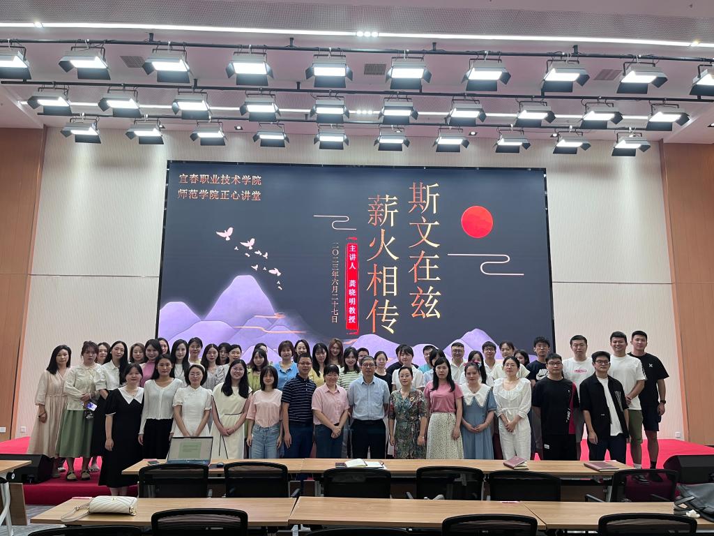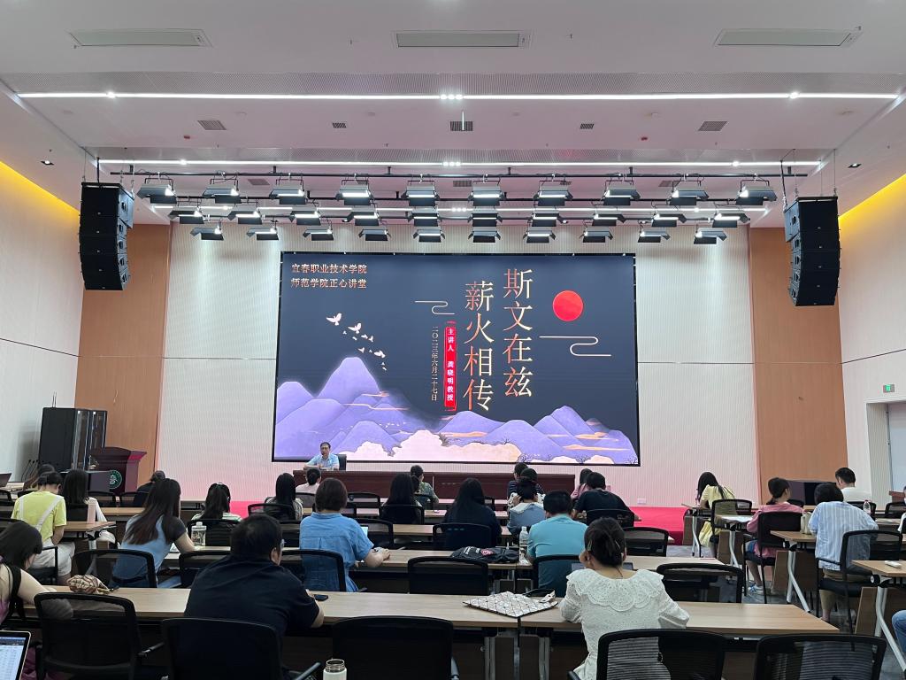 讲座以唐宋两代宜春教育为切入点,借用多个典故将宜春教育的兴起与发展娓娓道来。随后围绕宜春师范教育的溯源,以及学校合并组建后的发展成就相关内容进行了全面阐述,龚晓明用丰富的史实、生动的语言、深情的讲述,为大家带来一场知识盛宴。