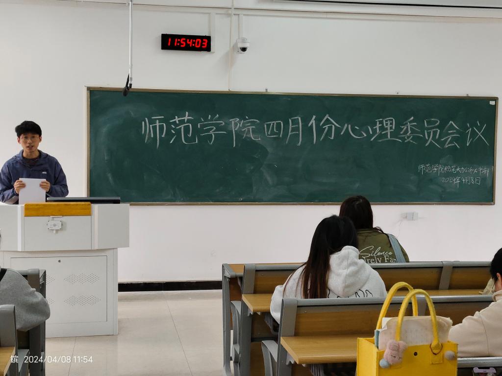 本站讯(师范学院 吴滨欣)为更好开展“心理健康教育月”主题活动48日中午正心楼D209教室召开了四月份全院心理委员会议。本次会议由辅导吴滨欣主持,全院心理委员共计90余人参会。