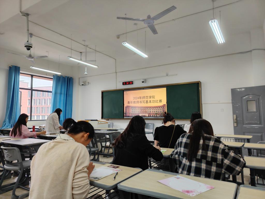 师范学子们展示了学前教育专业、早期教育专业和婴幼儿托育服务与管理专业的手工技能,包括刻纸、制作扭扭棒、剪纸等,同时也展示了粘贴画、非遗剪纸作品、梳子等手工作品。徐晴老师携同学们向大家呈现师范生基本技能——三笔字技巧,同学们现场书写粉笔字,展现扎实的书写基本功;在实训室的作品展示台上,还张贴了数幅优秀的毛笔书法作品,供众人欣赏。学院教务科组织30周岁以下的青年教师开展书写基本功比赛,比赛要求青年教师们同时完成粉笔字和硬笔字的现场书写,以全面检验青年教师的书写水平,促进教学技能的提升。徐静老师和同学们向大家展示了学前教育专业、早期教育专业的舞蹈基本功,曼妙的舞姿、扎实的基本动作让人赞不绝口。此外,学院还举行了线上视频大赛活动,向35周岁以下的青年教师们征集0—6岁婴幼儿关于STEAM课程、喂养照护、绘本等各方面的短视频,展现青年教师们的专业素养和创新思维能力。