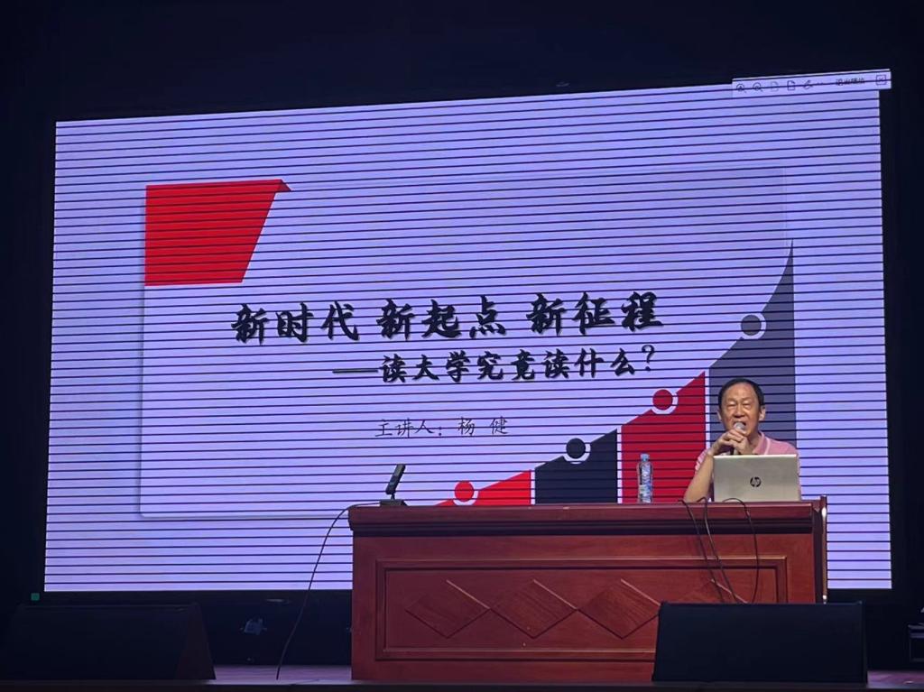 典礼上,大家一同听取江西省高校新闻宣传与研究专家,宜春学院原党委委员、宣传部部长、新闻发言人杨健的讲座。他深入浅出地为大家解答“读大学究竟读什么?”,并与新生们积极互动,他丰富的人生阅历和精妙的语言引起现场强烈共鸣。新生开学典礼在邹晓英书记和肖勇院长的亲切寄语中顺利结束。