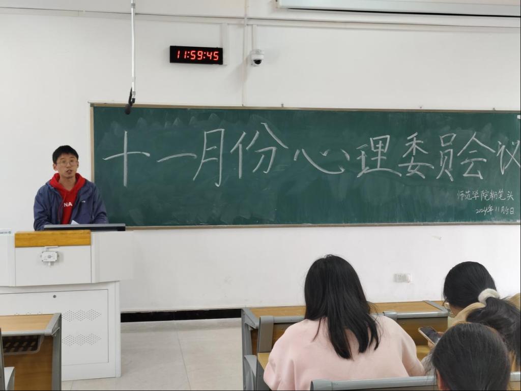 本站讯(师范学院 吴滨欣 学生记者 李雅萍)为着力提升学生心理健康素养,11月5日中午,师范学院在正新楼D209教室召开本学期十一月全院心理委员会议。本次会议由辅导员吴滨欣主持,学院心理委员共计70余人参加会议。