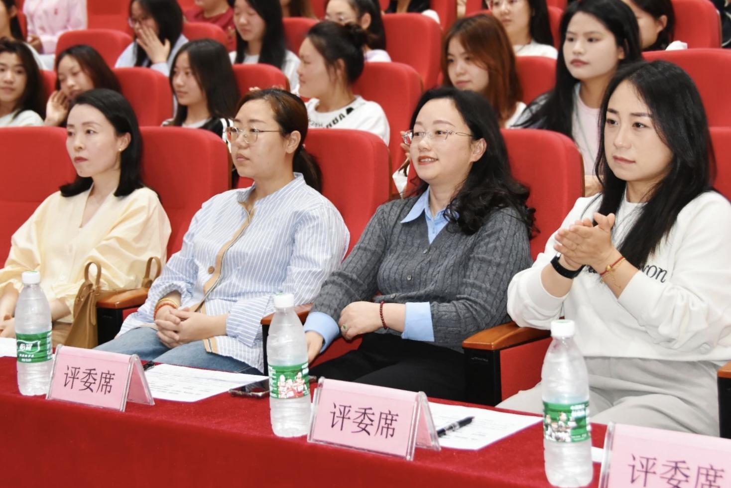 本站讯(师范学院 王焕 学生记者 龚洋涵 皮紫怡)为丰富校园文化生活,推动校园文化建设,点燃青年学子的音乐热忱,4月10日,师范学院在博达楼小礼堂举办“我耀出彩”十佳歌手比赛决赛。院党总支书记邹晓英,声乐教师杜文慧、刘欢、向莹莹担任评委,来自各班级的200余名学生共同观看本次比赛。