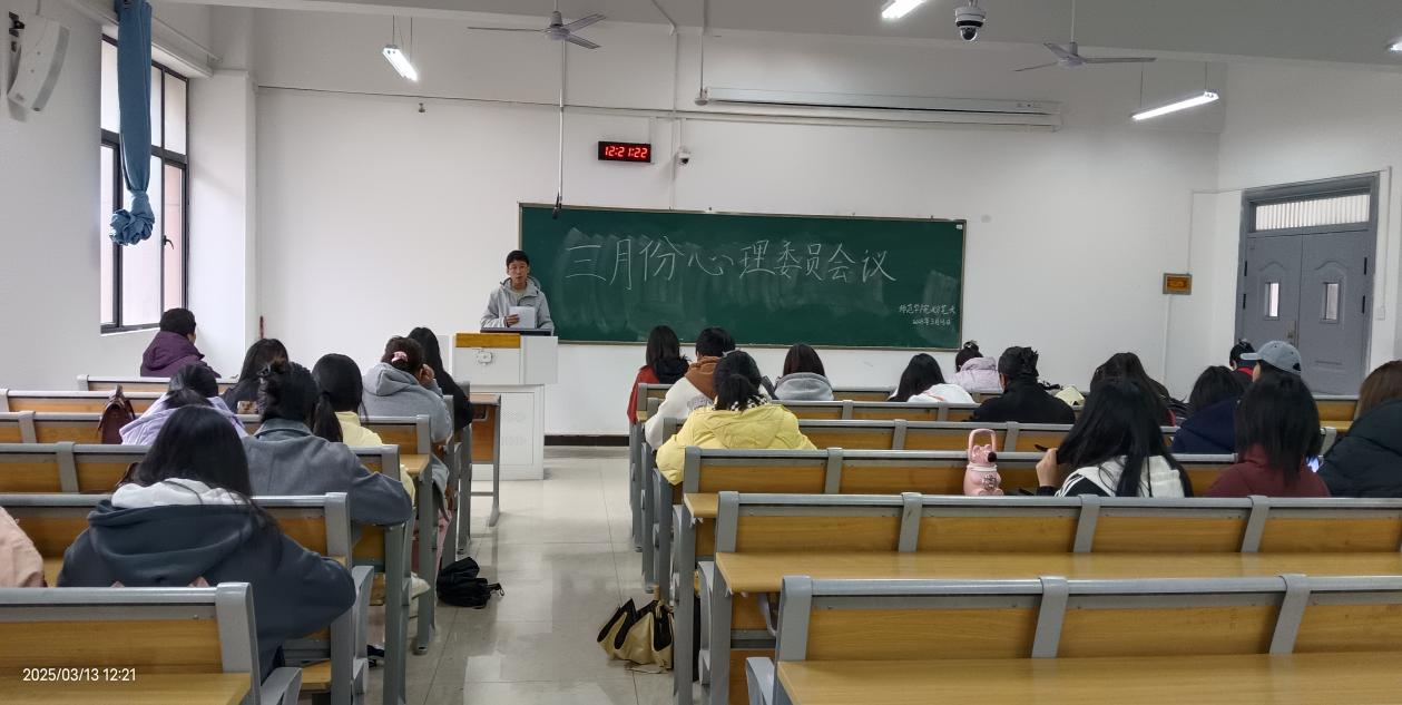 吴滨欣向心理委员提出本学期心理健康教育活动的工作要求,重点介绍“5·25” 心理健康教育月主题活动。本次活动月以 “万物生长,共赴心约” 为主题,将开展一系列形式多样、内容丰富的心理健康教育活动。活动旨在帮助同学们树立正确的心理健康意识,熟练掌握有效的心理调适方法,全面提升心理素质,从而以更加积极乐观的心态投入到学习与生活中,在成长道路上绽放独特光彩 。