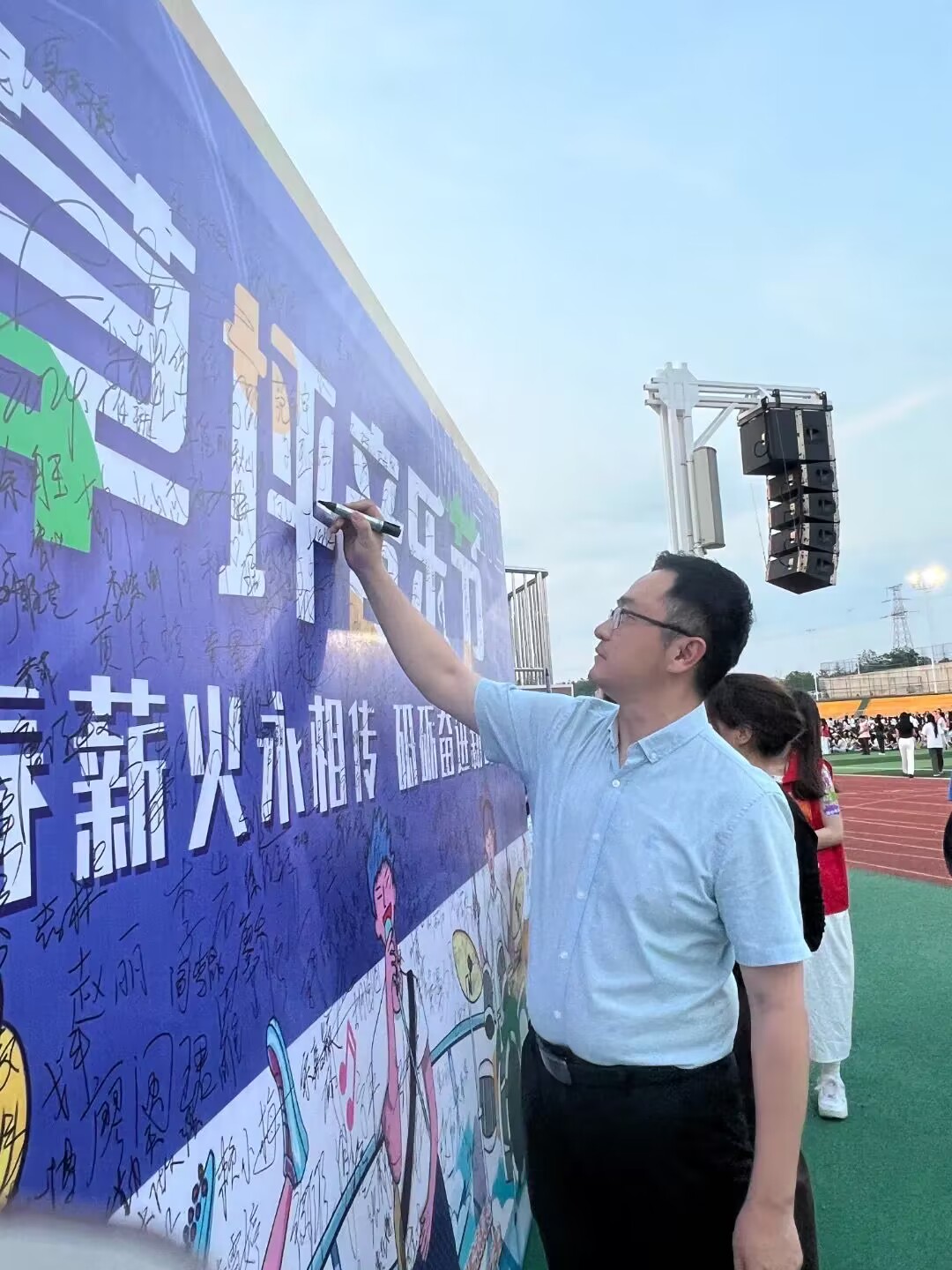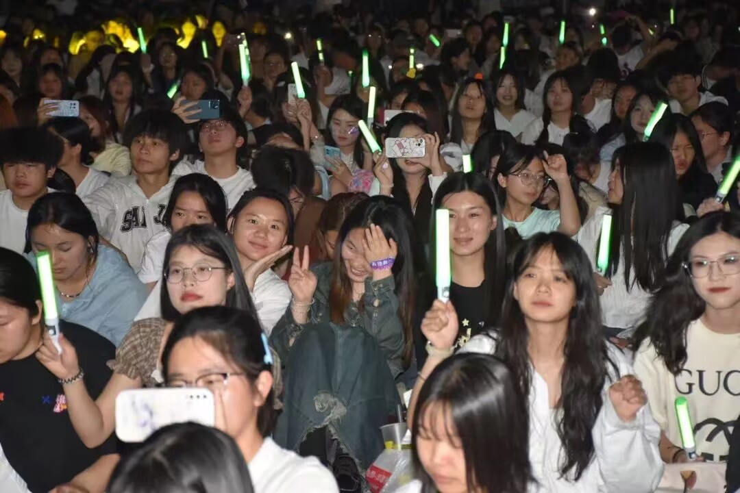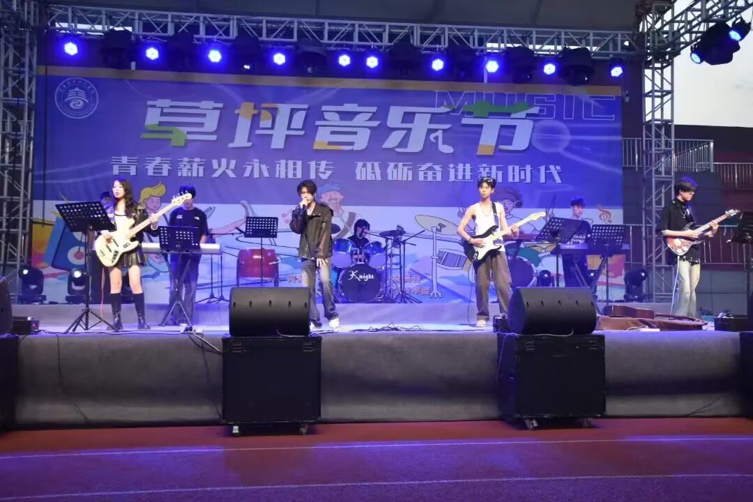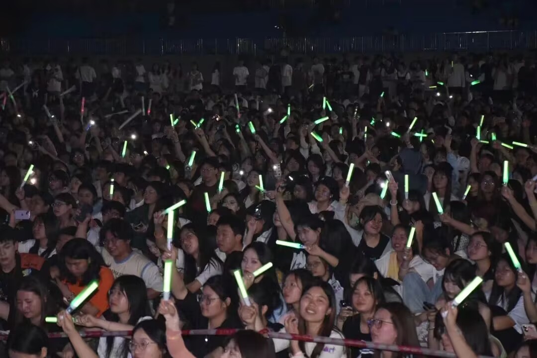 本站讯(团委 陈卓凡 甘露 杨雨 学生记者 邓文燕 南灿)青春于舞台上飞扬,热爱在旋律中绽放。为发扬五四精神,促进校园文化多样性,搭建青年学子展现自身魅力的舞台,营造飞扬恣意的青春氛围,5月15日晚,校团委联合艺术与设计学院于西区奋发体育场举办“青春薪火永相传,砥砺奋进新时代”“五四”草坪音乐节活动,校党委委员、宣传部部长马天娥以及校团委全体工作人员出席此次活动,活动吸引了全校上千名学生的积极参加。活动现场,同学们有序领取荧光棒入场,在闪烁的荧光与激情的欢呼中,音乐节正式拉开帷幕。“嘿,一起来!我们一起唱!”歌曲《改变自己》《李白》《爱要坦荡荡》《违背的青春》燃炸全场,好似将众师生拉进热烈飞扬的青春回忆里;街舞社带来爵士舞《illusion》《像最后一样》《smart》,活力四射,引得现场欢呼声连绵不绝;动感歌曲《西湖》《霍元甲》《讲真的》,带动全场听众跟随音乐节奏律动,荧光棒整齐划一地挥动着,汇成了一片荧光色海洋。“oh~baby别叫我达芬奇~”“恋爱ing,happy~ing”“我在小城夏天,陪你遇见浪漫”音乐一响,《月牙湾》《恋爱ing》《小城夏天》《别叫我达芬奇》演唱者闪亮登场!是谁的心又随着音乐在躁动?同学们表示:Oh baby,明明是你的心怀不轨,勾起我藏在心底那年夏天炽热的回忆,我要回到我那情绪价值拉满的热烈青春!校团委副书记杨雨献唱《下一站天后》《说爱你》,歌声细腻婉转,轻快的旋律与歌词,鼓励大家向梦想出发,即使不能到达,也要站在群星之中!演出最后一曲《日不落》,将全场氛围推上了最高点。荧光闪烁交织着的肆意青春,让音乐节在欢乐的氛围中圆满落幕。