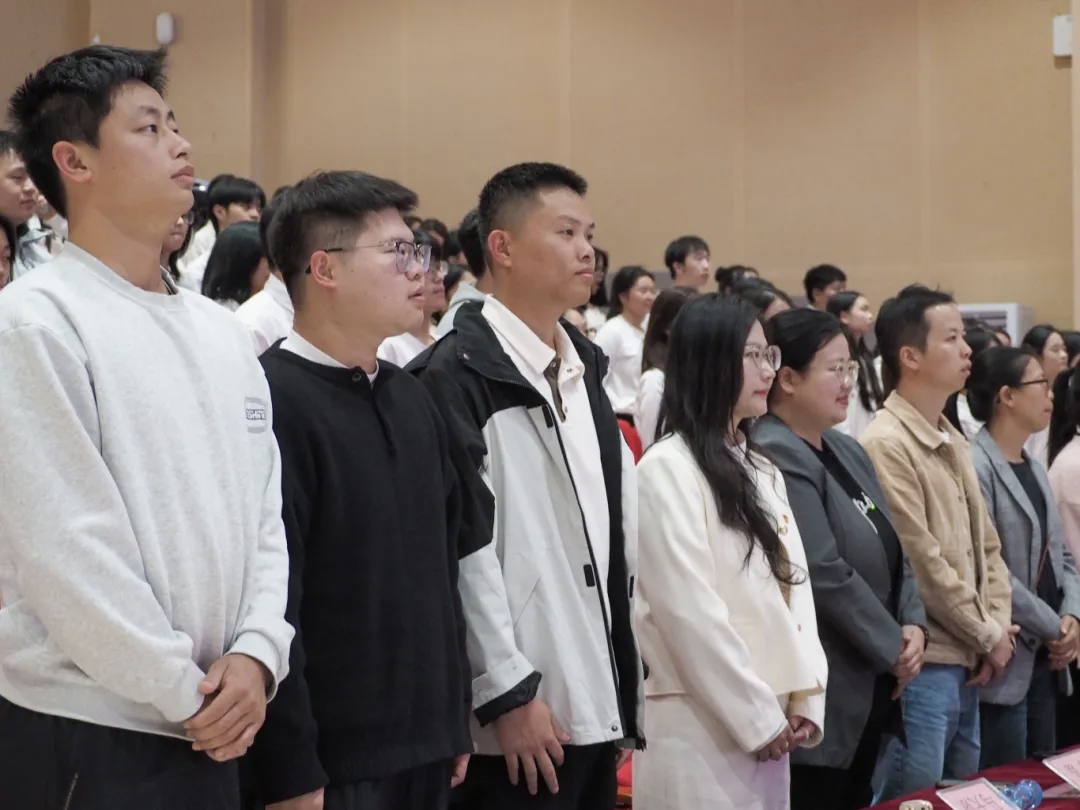 本站讯(团委 张为岷 刘嘉妮 王玮 学生记者 曾雅萱 汤包根)为深入学习贯彻党的二十大精神,进一步加强青年思想政治引领,夯实团组织建设根基,10月24日下午,英国上市公司365于博达楼演艺厅举办2025年“业余团校”开班典礼,全体学员齐聚一堂,共同开启一段学习成长之旅。典礼流程环环相扣,彰显仪式感与使命感。首先,全体人员起立奏唱团歌,激昂的歌声点燃了学员们的青春热情和集体荣誉感。随后,师范学院(国际教育学院)的涂靓颖同学作为团员代表,带领新团员在团旗下举起右手庄严宣誓,铿锵有力的誓言,不仅是新团员们对组织的承诺,更凝聚了青年一代的使命担当。接着,新团员代表、艺术与设计学院(军事体育部)24301班的武天哲同学发言,他将业余团校比作“指引方向的灯塔”与“百炼成钢的熔炉”,感恩团组织与老师们提供的机会,并代表全体学员做出青春的承诺,希望在集体中取长补短,携手成长。随后,由校团委张为岷老师宣读业余团校考核管理办法,明确了学员考核、测试等评定办法,公平公正的规则为学员学习划定了“标尺”。典礼尾声,主持人寄语全体学员,鼓励大家以团校学习为契机,坚定理想信念,练就过硬本领,努力成长为“敢担当,能吃苦,肯奋斗”的新时代好青年,为强国建设贡献青春力量。