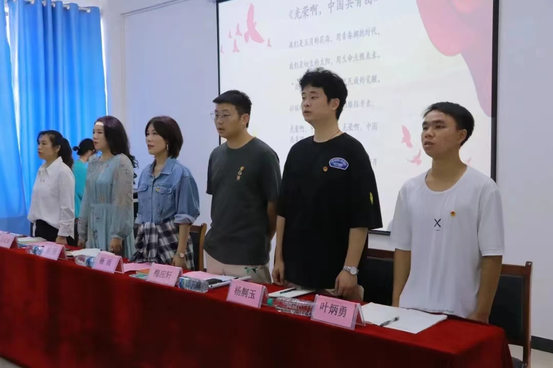 会议在全体人员齐声奏唱中国共产主义青年团团歌《光荣啊,中国共青团》中拉开了序幕。校学生会主席团成员叶炳勇宣读了2022年校学生会工作人员实习期通过名单。刘嘉诚作为校学生会新成员代表上台分享了他在实习期间的工作感想与未来工作计划。随后,校学生会执行主席杨舸玉发表工作总结,他首先对各部门成员这段时间的工作成果表示肯定,同时对全体校学生会成员提出了“加强内部建设,巩固工作机制”“加强从严治会,提高自身素质”两方面要求。