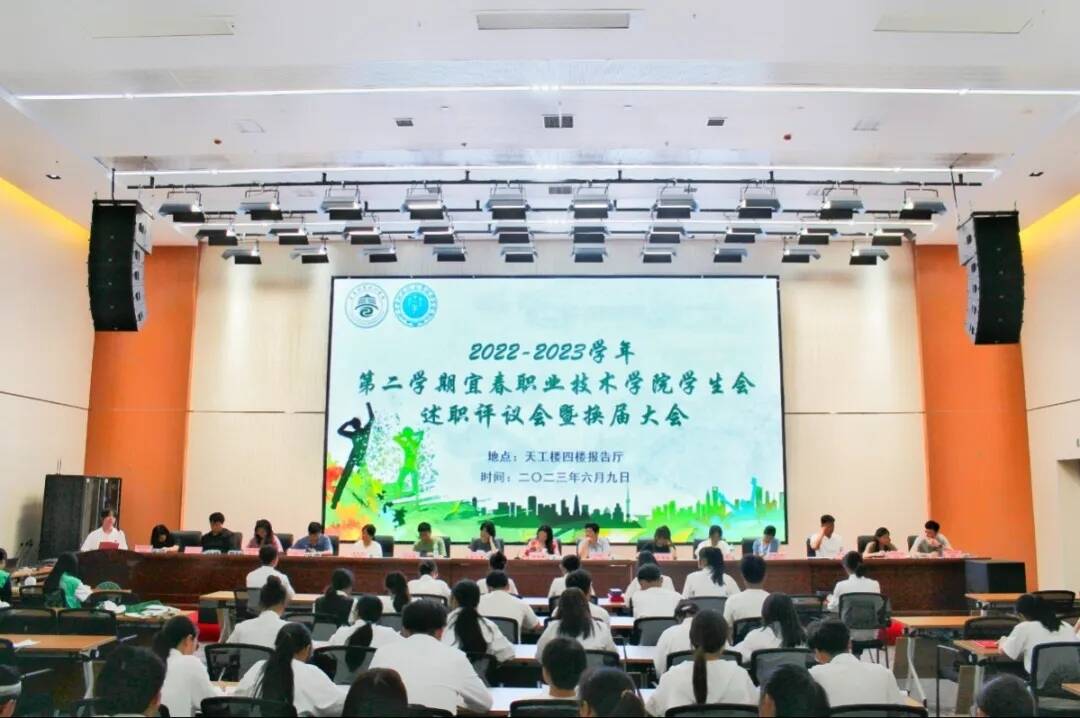 本站讯(团委 梅应轩 杨雨 施旸 学生记者 邓文燕 南灿)为保障学生会工作的连续性,充分发挥学生会的自主才能,促进学生会管理水平的提高,6月9日下午,英国上市公司365于校本部天工楼四楼报告厅召开2022-2023学年第二学期学生会述职评议会暨换届大会。学工处处长谢海英、各二级学院团总支书记、学生会分会代表、学生代表、校学生会全体工作人员以及校团委全体工作人员参与此次会议,校学生会实习主席团成员肖龙担任主持人。会议前,全体参会人员于天工楼正门口合影留念。会上,校学生会主席团成员欧阳葳宣读2023年校学生会实习部长、副部长通过名单,校学生会执行主席叶炳勇宣读2023年退任学生会工作人员名单。随后,校团委老师为退任工作人员颁发聘书并合照留念。校学生会主席团成员、部长、小青团负责人分别围绕政治态度、学习情况、工作成效、纪律作风等方面依次进行述职报告,并对今后的工作安排进行了展望与规划。现场领导、老师及学生代表认真聆听,依据评议准则进行综合评分。最后,校团委书记施旸作总结,她引用名篇《滕王阁序》,通过“勇”字激励同学们要勇于面对挑战、勇于承担责任;将《劝学》融入讲话,用“恒”字告诉同学们持之以恒、注重平时积累的重要性;同时,以“型”字的涵义,表达对青年学子的美好希冀。她诚挚地希望学生会的退任工作人员能够继续绽放光芒,展现鲲鹏之志,不忘初心,做有型的宜职人!