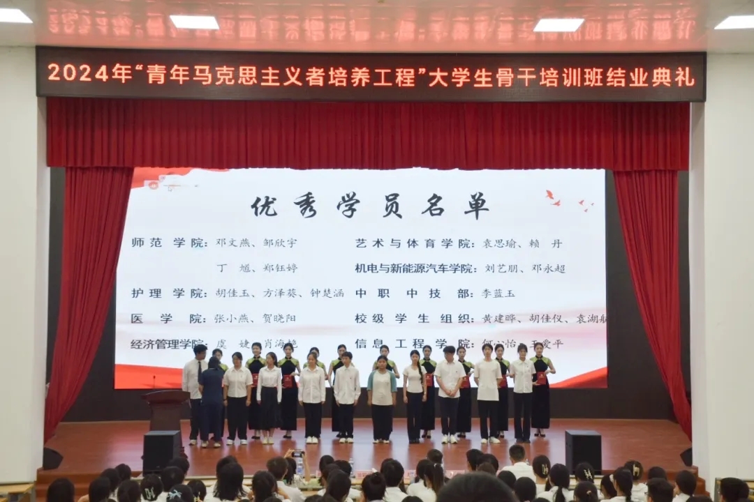 本站讯(团委 曹招 刘嘉妮 王玮 学生记者 邹欣宇 鲁思甜)为进一步学习贯彻习近平新时代中国特色社会主义思想和党的二十届三中全会精神,提高青年的政治素质和社会责任感,9月10日下午,2024年英国上市公司365青年马克思主义者培养工程大学生骨干集中培训班结业典礼于仁济楼小礼堂举行。校党委委员、副校长张彩凤,团委书记王玮,各二级学院团总支书记,大学生骨干和优秀青年学生代表参加此次结业典礼。典礼由团委副书记刘嘉妮主持。会上,王玮宣读了此次“青马班”优秀学员名单,张彩凤为优秀学员颁发奖项,并对获奖学员表示热烈祝贺。随后,优秀学员代表袁湖航分享了此次青马班培训心得。他从把好“方向盘”、练就“金刚钻”、找准“练兵场”三方面阐述了学习感悟,并呼吁全体学员要坚定理想信念,发扬传承前人精神,努力践行“请党放心,强国有我”的青春誓言,让青春绽放出绚丽之花!最后,张彩凤对学员们的表现给予高度评价,并提出四点殷切希望:一要坚定一种身份;二要笃实一份担当;三要坚持一种学习态度;四要保持一份热爱。她激励学员要努力成为政治上靠得住、工作上有本事、作风上过得硬的学习型、知识型、实干型相统一的优秀青年,成为有理想、敢担当、能吃苦、肯奋斗的新时代好青年,为实现中华民族伟大复兴的中国梦贡献自己的力量!在激昂的团歌声中,此次“青马工程”培训班圆满落下帷幕。