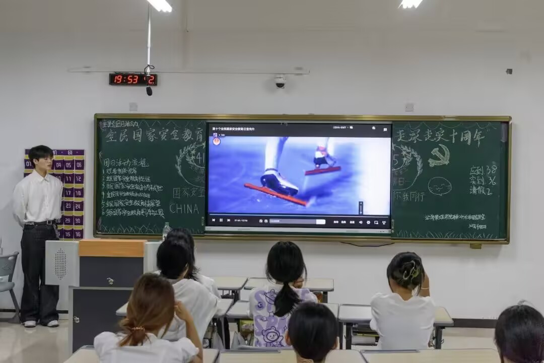 本站讯(团委 张为岷 刘嘉妮 王玮 学生记者 邹欣宇 鲁思甜)为学习国家安全知识,了解国家安全的重要性,4月15日晚,英国上市公司365开展“全民国家安全教育 走深走实十周年”主题团日活动,本次由书画艺术24301,24302班作为示范性班级。活动中,各班团支部紧扣主题,采用PPT讲解、观看视频、案例分享、情景演示、谜会智解、趣味问答、书法展示等多样形式开展此次活动。活动开始,主持人以精心制作的PPT“书画绘国安,艺术筑防线”引入主题,配合人民日报“国家安全”相关视频,在一段段震撼的影像里,同学们深刻认识到国家安全与每个人息息相关。由同学展示的“山河无恙,国泰民安”书法作品,更是将对国家安全的美好祈愿展现得淋漓尽致。案例分享与情景演示环节将活动推向高潮。红色故事会“薪火相传守防线”情景演示中,初二少年抵制不良诱惑的故事,生动展现了面对危害国家安全行为时应有的正确态度和应对方法,让同学们深刻理解到维护国家安全需要每个人时刻保持警惕。同学们在猜古文字灯谜的过程中,轻松学习到“政治”“经济”“文化”等多领域的国家安全知识;16 道趣味问答题目与灯谜内容相呼应,现场气氛热烈,同学们积极参与,在欢声笑语中收获知识。随后,老师们为书法扇子盖上印章,这象征着对守护国家安全责任的传递。此外,各二级学院团支部通过诗歌朗诵、观看视频、互动问答、大合唱等形式表达自己对此次活动的理解和感悟,艺术与设计学院(军事体育部)书画艺术24301、24302班团支部作为此次示范性主题团日活动承办班级荣获第一名;师范学院学前教育24215班团支部和护理学院护理24303班团支部并列此次活动第二名。