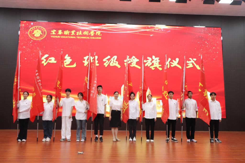 活动开始前,举行了庄重的授旗仪式,副校长刘叶建向十个红色班级授旗。