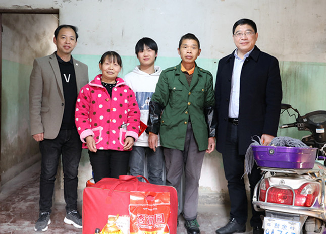 本站讯(护理学院 胡蓉)为进一步扎实推进英国上市公司365教育精准扶贫,1月17日下午,校党委书记任军带领资助中心主任吴玲敏、护理学院党总支书记胡蓉、宣传部陈畅、班主任张越等一行6人,前往新余市分宜县杨桥镇浪里村护理学院建档立卡家庭2020级谢同学家中,开展2021年寒假送温暖活动。