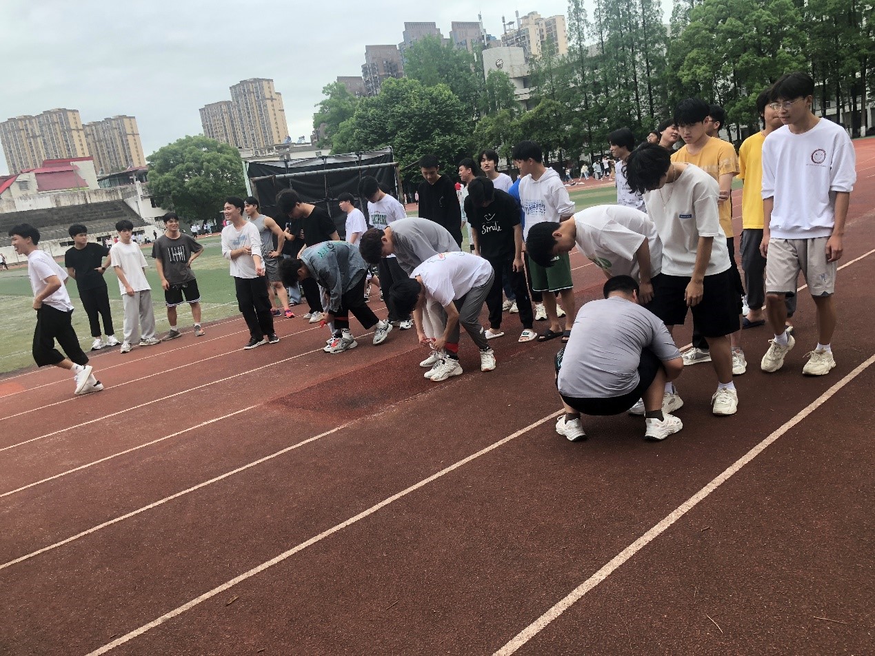 本次活动的主题叫“两人三足接力赛”。老师将学生分为四支队伍,每队10名学生,2人一组。每支队伍发放1根红绳,每个小队的第一组组员将红绳分别绑在左腿和右腿上,待准备好后出发50米的跑步比赛。每个小组完成后红绳传递给下一个小组,用时最短即为胜出。活动全程同学们情绪高涨,积极性非常高。