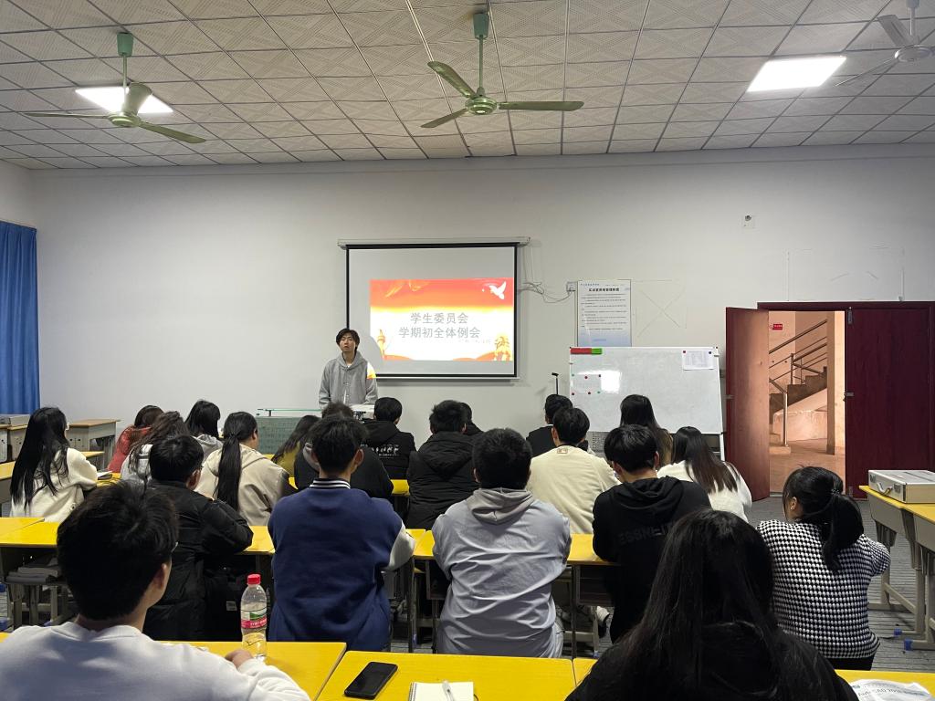 会议开始,执行主席颜欣宇同学对过去一学期工作做了总结,并将今年学生会要开展的重要工作做了简要讲解。随后,各部门负责人做出表率发言,进一步详细计划了新学期所要完成的工作及活动内容。最后,刘嘉妮老师做总结发言,强调今年活动的重要性,作为学生干部,要充分发挥自主创新意识,加强创新实践能力,促进自我提升。