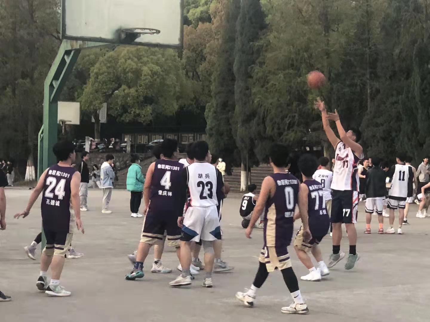 比赛前,组织各班领队学习了篮球联赛裁判规则,和有关疫情防控的要求,消除风险隐患,确保赛事顺利举办。比赛中,双方球员向对方发起进攻,有的球员从防守队员中突围出来,迅速得分,有的带球过人,以闪电般速度灌篮,所有球员拼尽全力,互相配合,篮球场外欢呼声此起彼伏,为场上的选手加油助威。