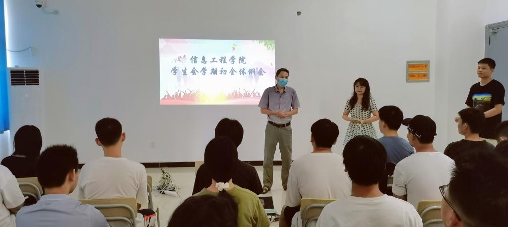 本站讯(信息工程学院刘嘉妮 学生记者杨李)为增强学生会内部成员的责任意识和奉献精神,全面调整各部门的工作状态,扎实开展新学期的各项工作,8月30日,信息工程学院召开学生会学期初全体例会。信息工程学院党总支副书记陈小保、团总支书记刘嘉妮、辅导员黄彪出席本次会议,全体学生会成员、学院社团负责人共同参与本次会议。