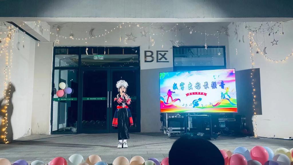 coco Elva Tia校街舞社给同学们带来的开场舞《pink venom》点燃全场。接着,选手们怀揣着激情与梦想依次展示,有的双人精彩对唱,有的怀抱吉他展示琴技,期间还穿插了听歌识曲游戏,全场气氛高涨。之后,新生代表苗族姑娘余琼梅给大家展示了一段民族舞蹈,引得全场阵阵喝彩。最后,陈小保对学生会工作人员的辛勤付出表示由衷感谢,对参赛选手的精彩表演表示充分肯定。