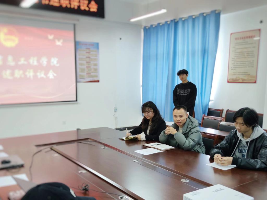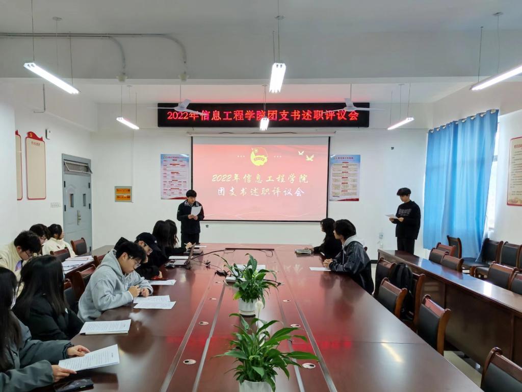 本站讯(信息工程学院刘嘉妮 学生记者沈书强)为进一步促进各团支部之间的交流与学习,明确今后工作方向,提高工作效率,切实抓好班团队伍建设,12月8日,信息工程学院于智云楼B501开展团支书述职评议会,参加此次会议的有院党总支书记罗来曦、团总支书记刘嘉妮以及全院团支部书记。