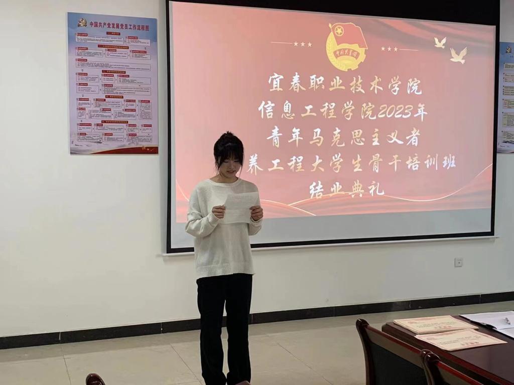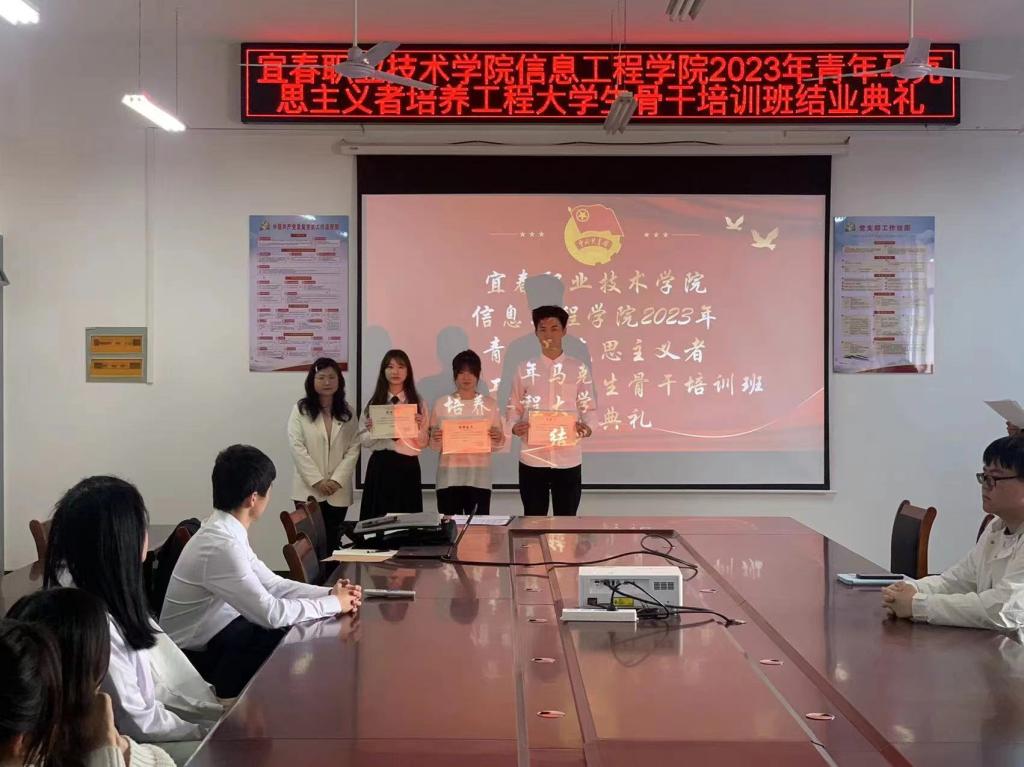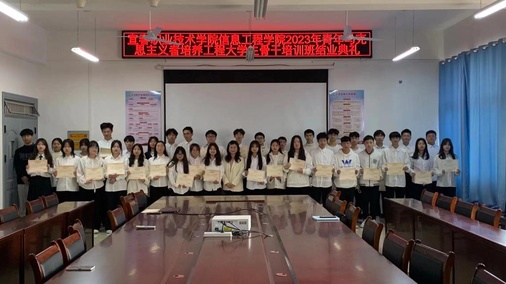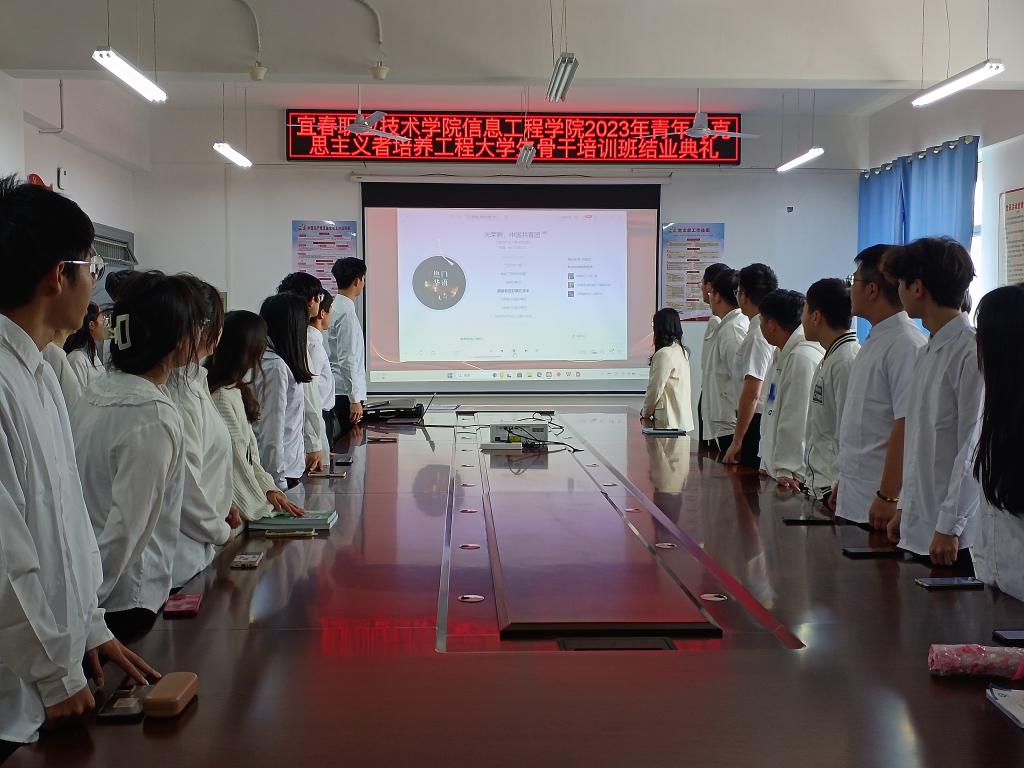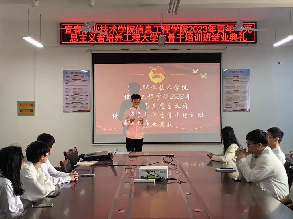 本站讯(信息工程学院 黄彪 学生记者 闻舒鹏)为切实提高大学生骨干思想政治素质,推进青年马克思主义者培养工程,3月21日,信息工程学院青马工程大学生骨干培训班于智云楼B501举行结业典礼。本期青马工程大学生骨干培训班完成了理论学习、社会实践、自主学习、交流讨论、理论测试等课程学习及考核,切实发挥大学生骨干模范带头作用。