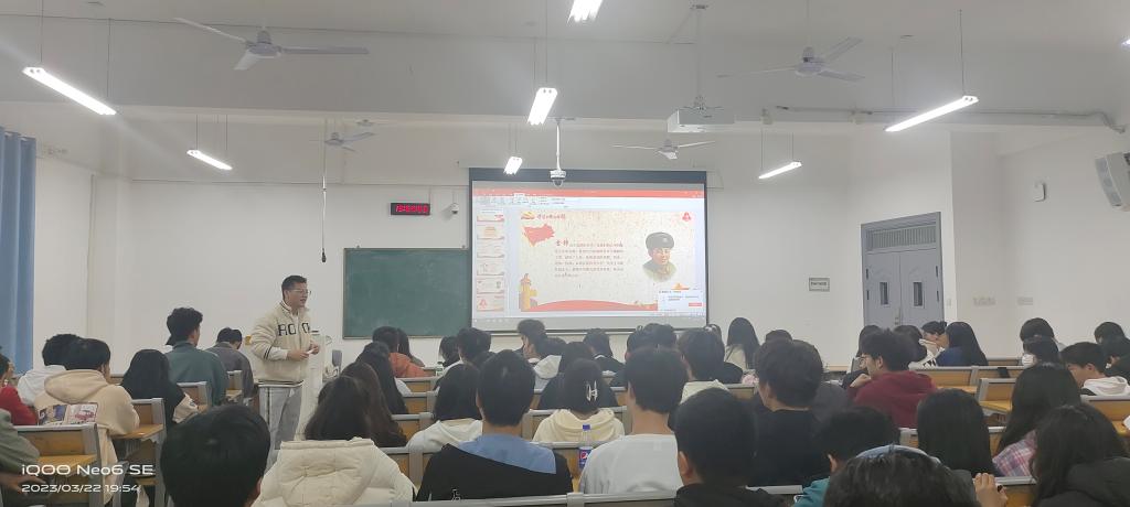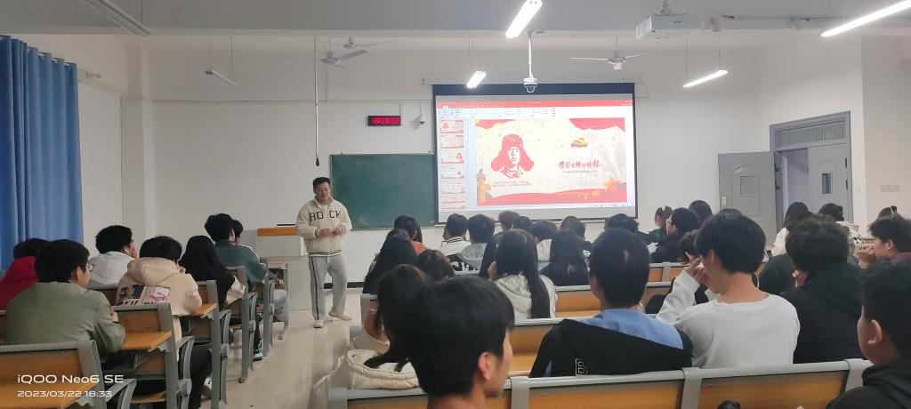 主讲老师张保揭通过播放雷锋记录短片,以及围绕雷锋同志的生平、光荣事迹、雷锋精神的核心以及新时代雷锋精神的内涵等内容展开讲述,让同学们感受雷锋精神,并领会雷锋精神的内涵与精髓。