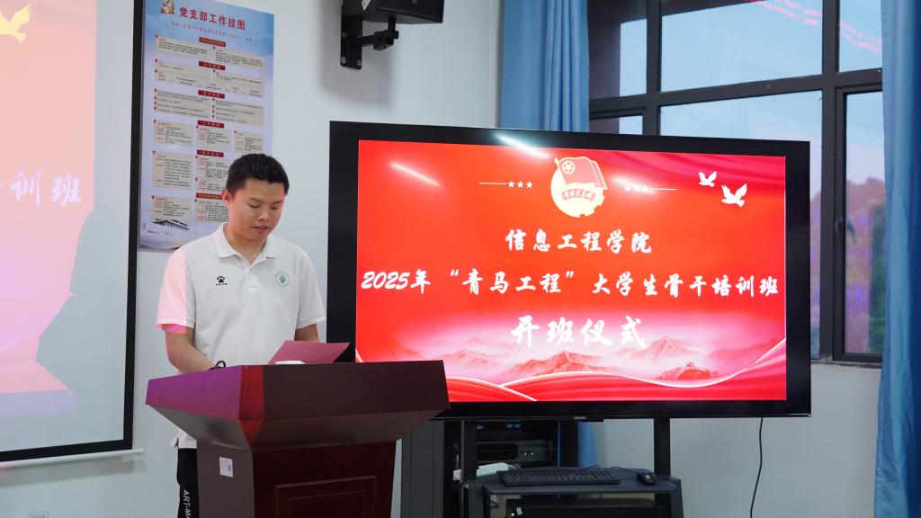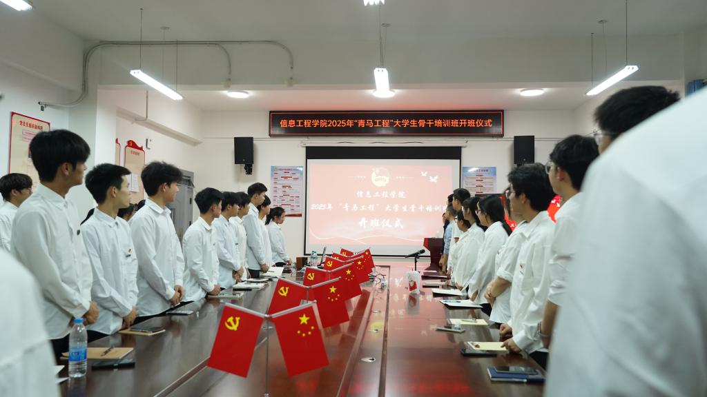 为深入贯彻落实习近平总书记关于青年工作的重要思想,贯彻落实党的二十届三中全会精神、团的十九大精神,着力为党培养和输送一批信仰坚定、能力突出、素质优良、作风过硬的青年政治骨干。3月27日,信息工程学院在智云楼B501举行2025年“青马工程”大学生骨干培训班开班仪式。学院党总支书记罗来曦、学工负责老师李纪杨、辅导员黄彪以及本期“青马工程”培训班的全体学员参加。