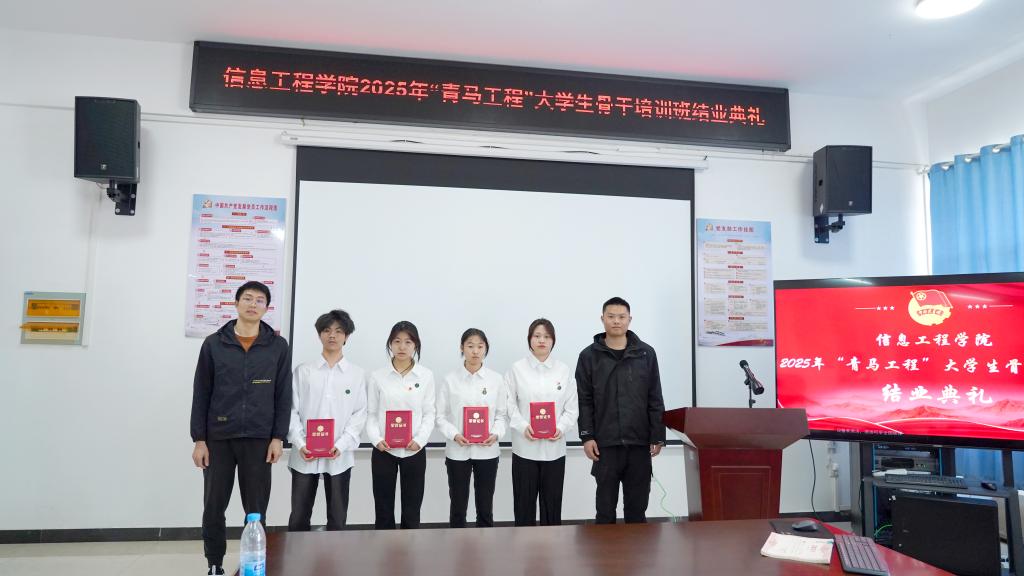 4月3日中午,为期一周的信息工程学院2025年“青马工程”大学生骨干培训班结业典礼在智云楼B501举行,学院学工负责老师李纪杨,辅导员黄彪老师,以及全体青马班学员参加。