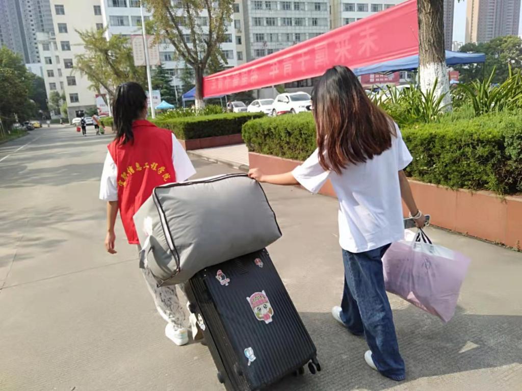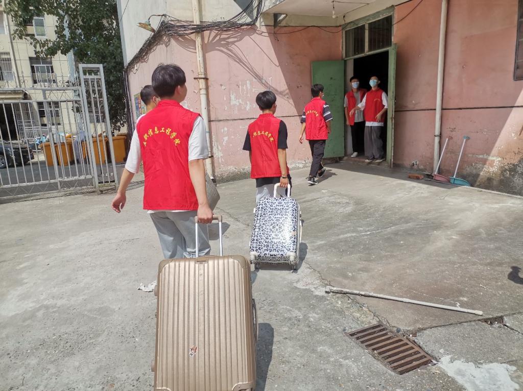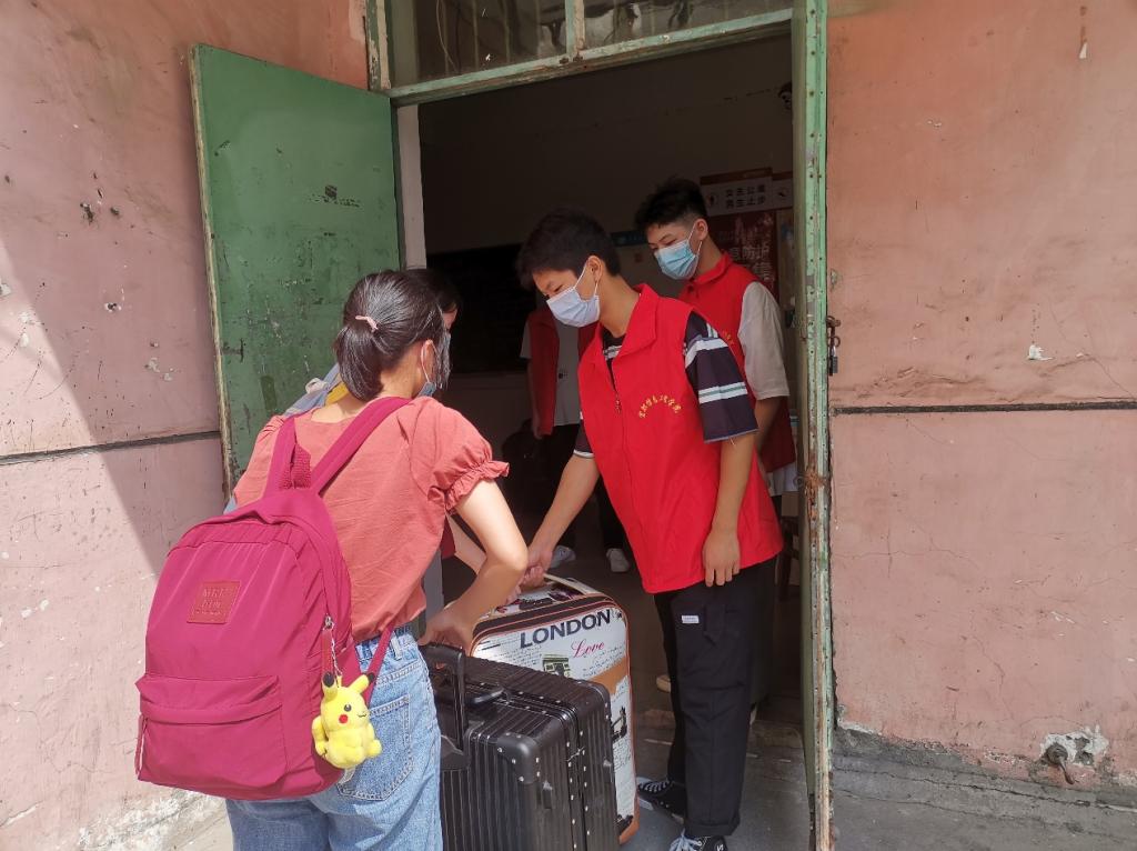 在志愿服务期间,信息工程学院志愿者们分工明确、有条不紊地迎接返校学生,志愿服务队主要在校门口及寝室楼下设置服务点,引导同学们配合学校防疫工作,帮助同学们搬运行,有效地解决了返校学子行李多、搬运困难等问题,让同学们能够快速、便捷、安全地办理入校。
