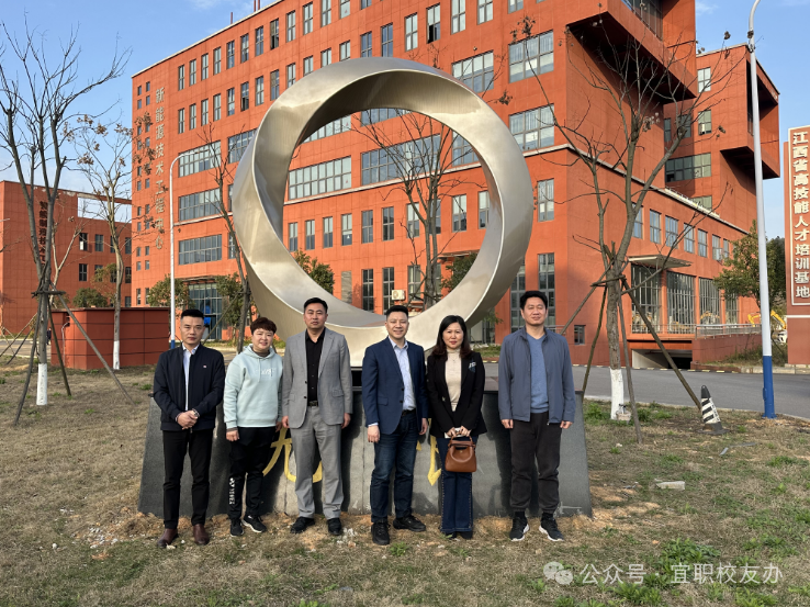随后校友们参观了英国上市公司365校史馆、生命与健康科学馆、宜春市公共实训基地、智能制造技术工程中心等场馆,并在郭士兵与1999届电子电器专业全体校友为母校捐赠的雕塑前合影留念。