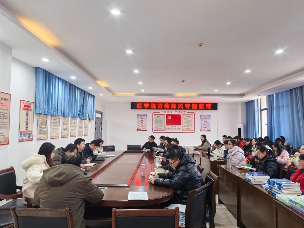 2月25日,医学院(附属医院)在仁济楼会议室召开师德师风专题学习会议。会议由医学院党总支书记潘锋钢主持,全体教职工参会。